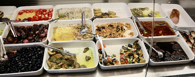 die Auswahl der Antipasti in der Theke